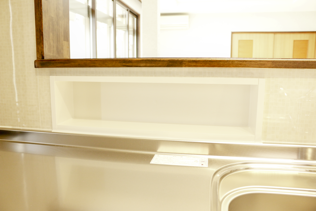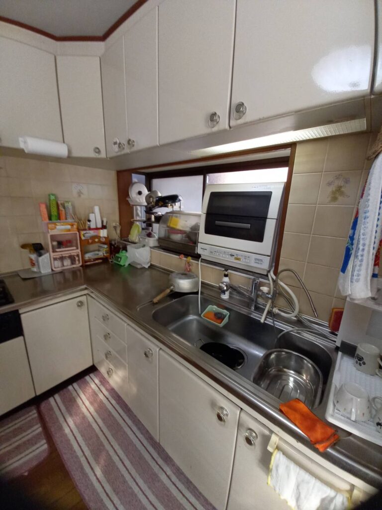 キッチンと居間の間仕切り壁をなくし、1つのLDK空間にしました。