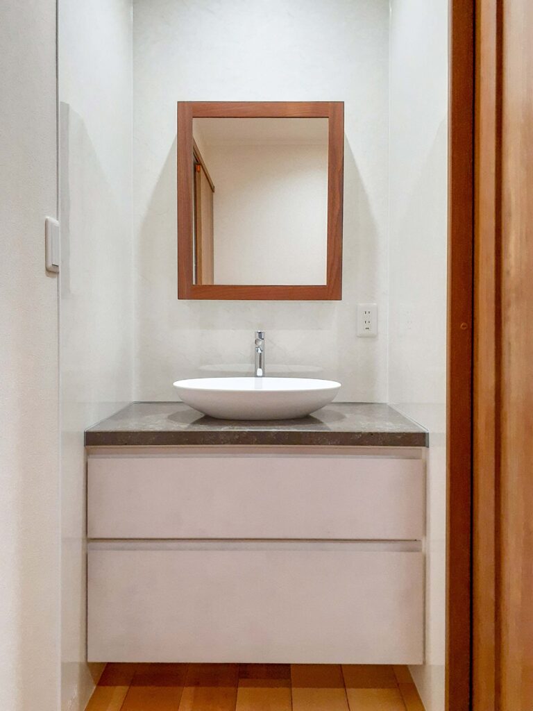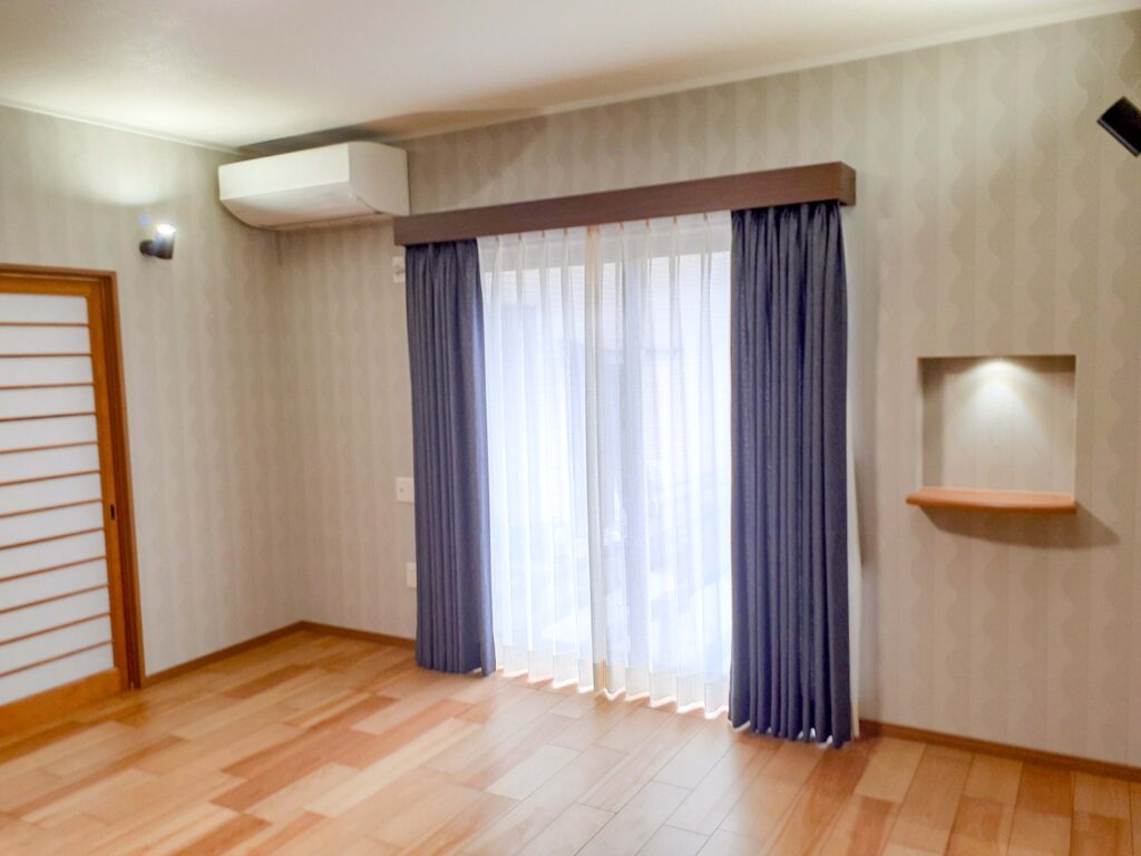 Uターンでご実家に同居される為にリノベーションをご依頼いただきました。 和室を洋室化し床暖房も設置しました。2階に新たに洗面スペースとトイレを設えました。 階段が急でこわいとの事だったので、緩やかな勾配に架け替えました。